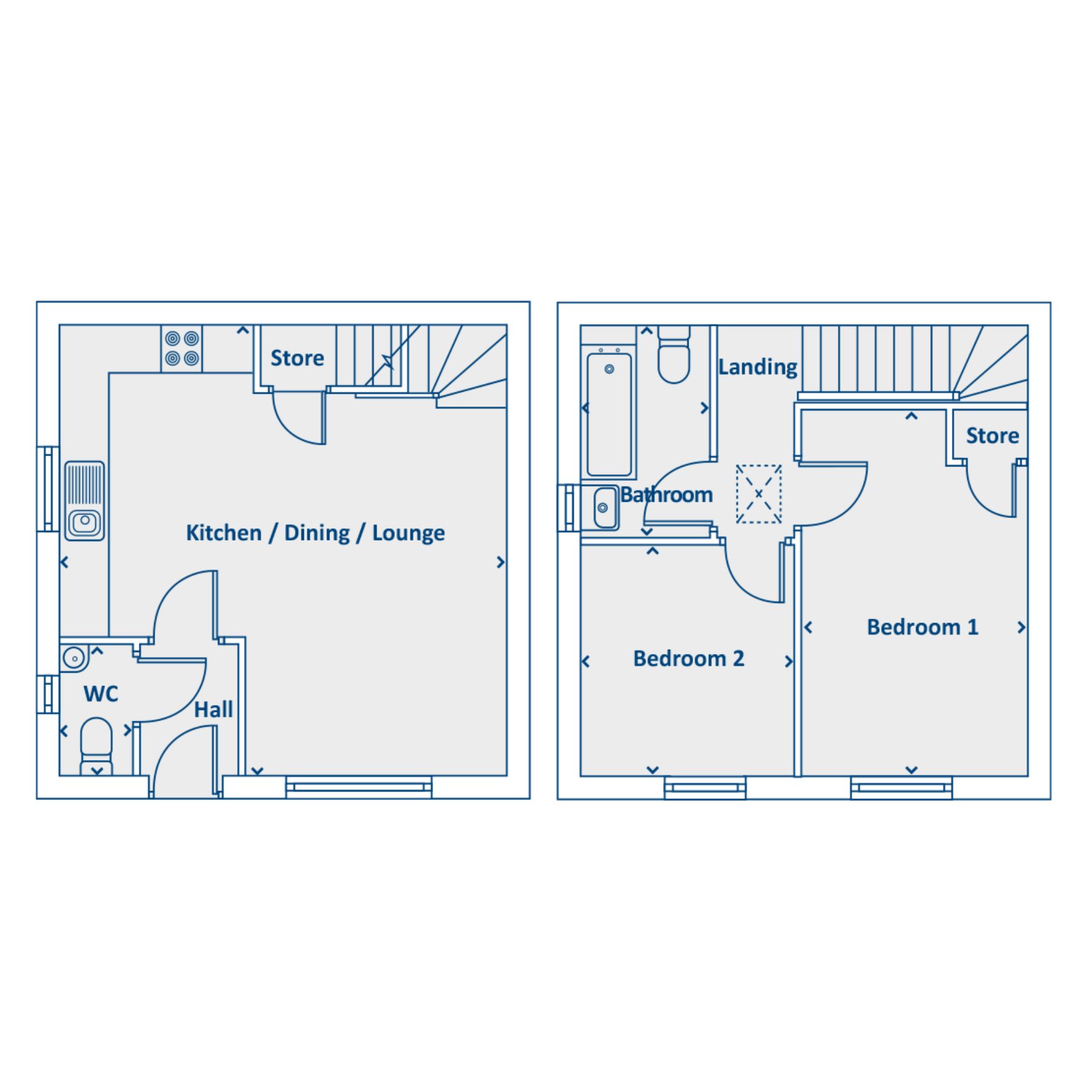 The Devon welcomes you via your own private entrance and handy ground-floor WC, leading on to the ample kitchen living space. Upstairs, you will find a full three-piece bathroom and two bedrooms.