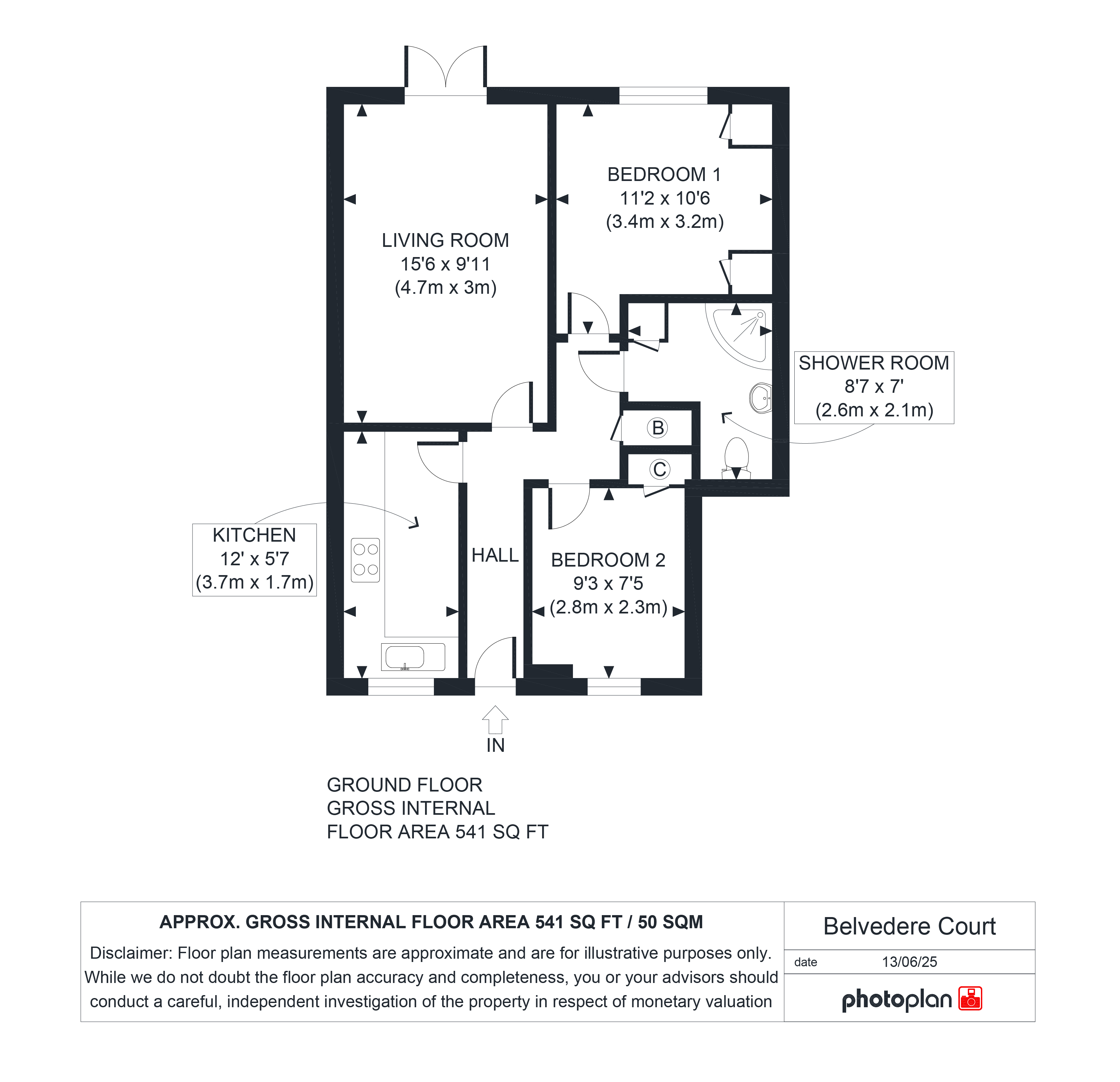 The principal bedroom is a spacious double with excellent built-in wardrobes, and the second bedroom offers versatility as a single bedroom, study or creative space. A well-appointed shower room includes a modern curved enclosure, vanity unit and chrome towel rail.