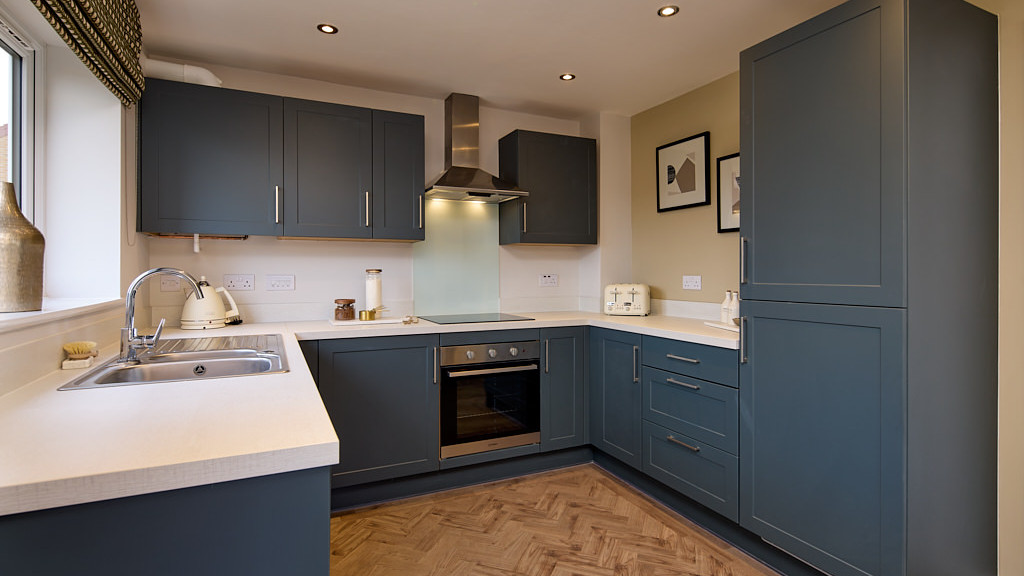 stylish kitchen/diner with a beautifully designed U-shaped kitchen and generous dining area. When opened,
