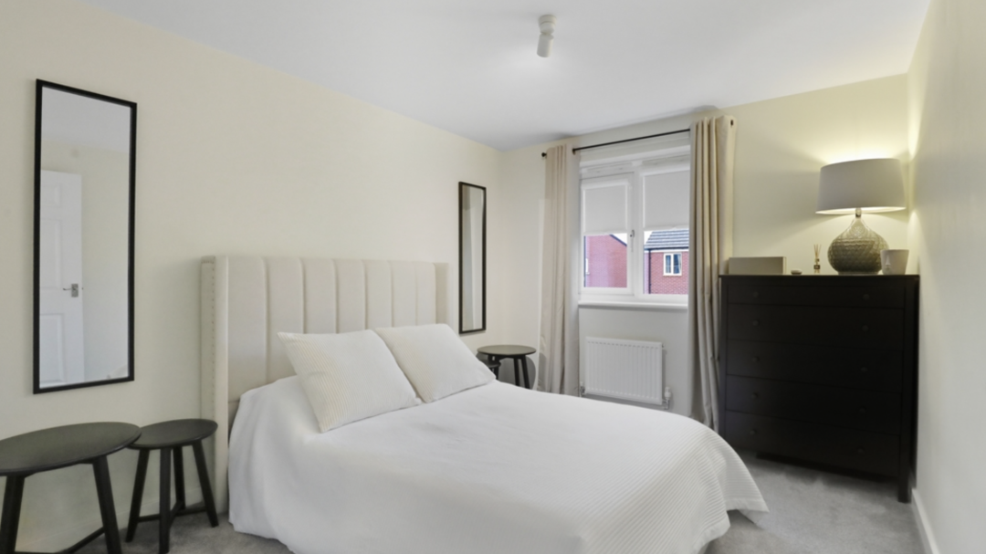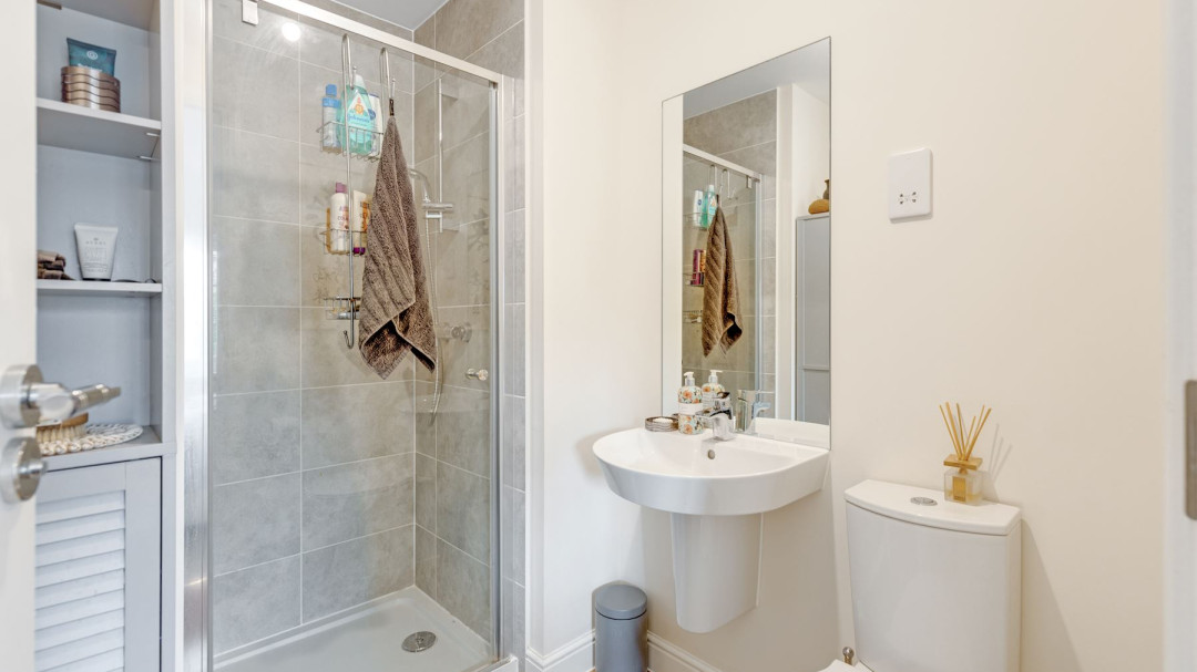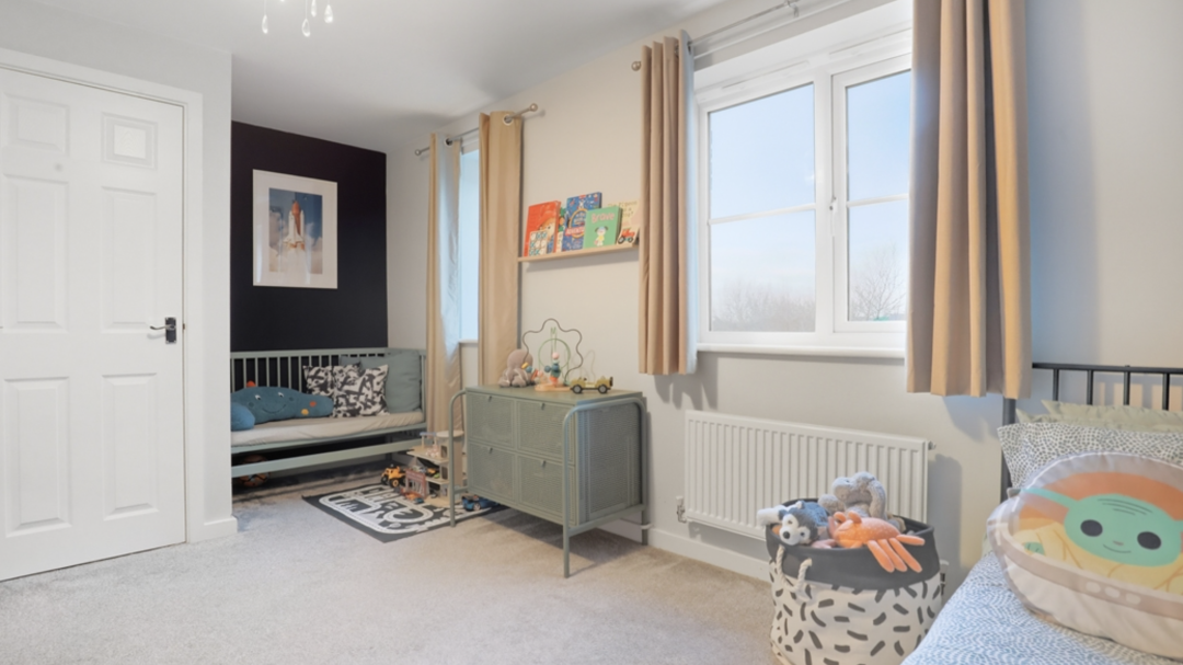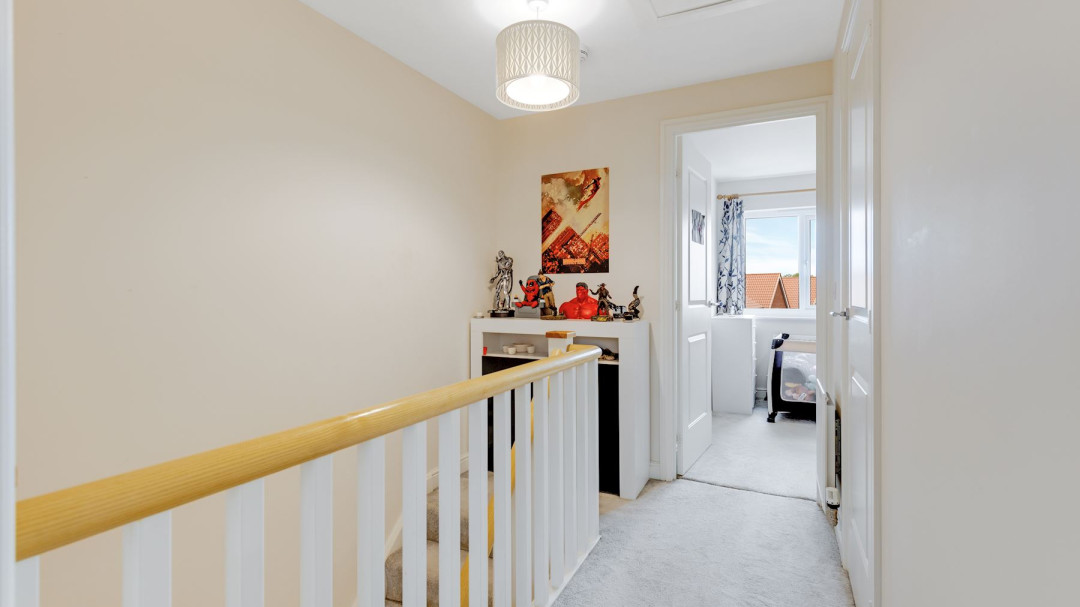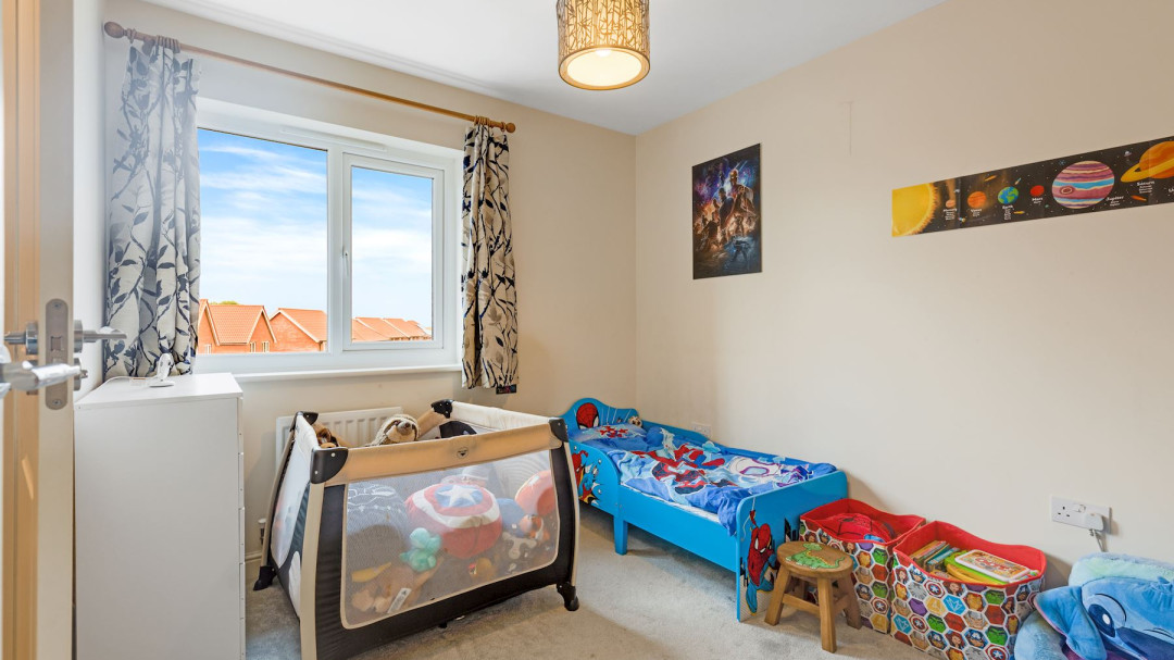 Upstairs, the three generously proportioned bedrooms all benefit from good ceiling heights, soft neutral decor, and pleasant outlooks. The master bedroom includes fitted wardrobes, while the other two rooms are versatile for children, guests, or home office use.The property benefits from two modern, bright bathrooms: a family bathroom with bath and overhead shower, and a separate toilet bathroom featuring contemporary tiling wall for a fresh, spa-inspired feel.