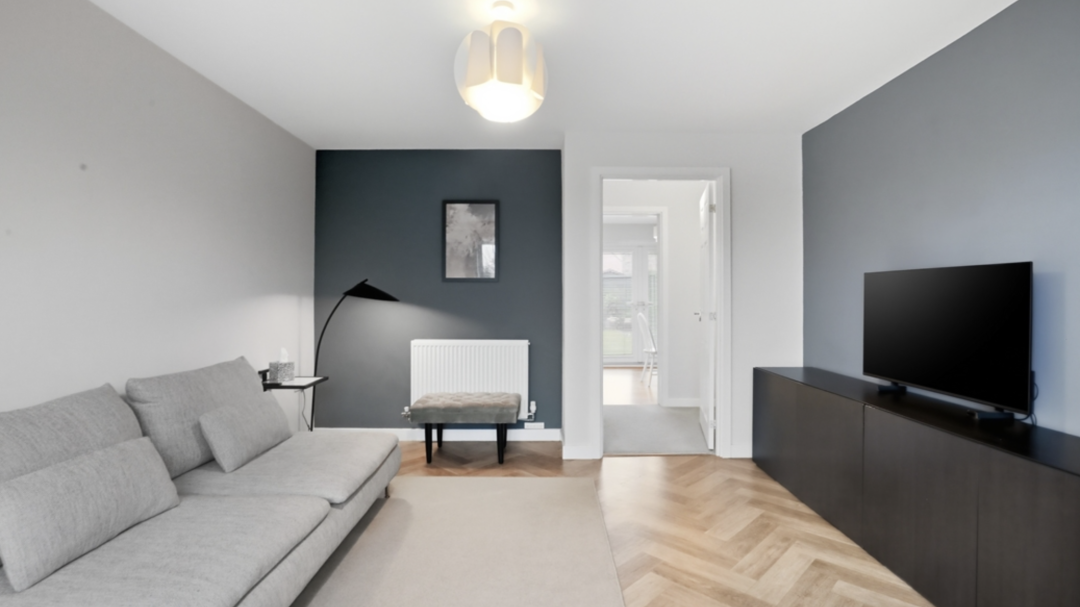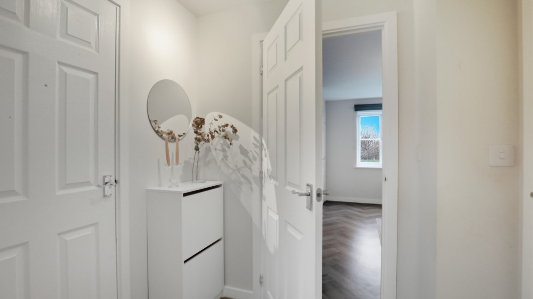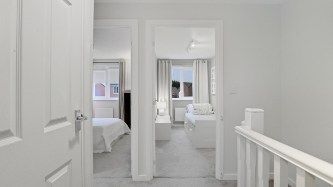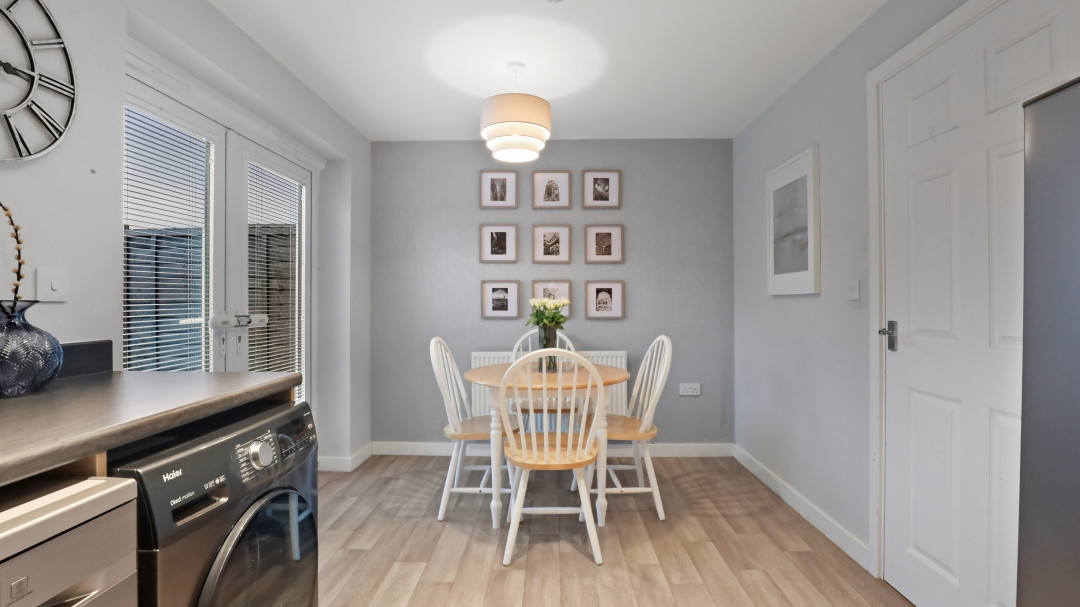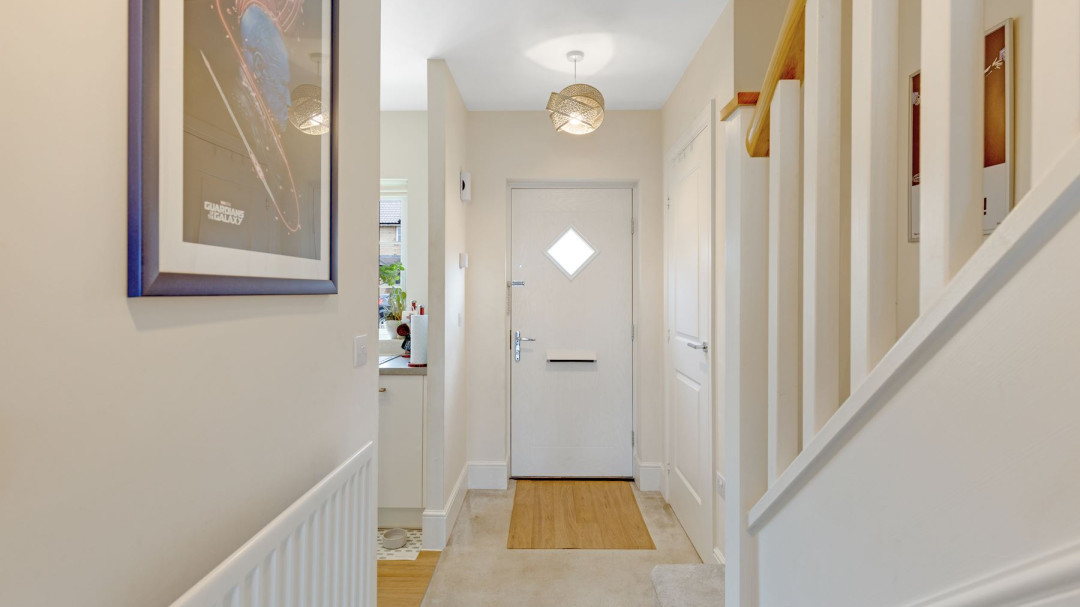 Upstairs, the three generously proportioned bedrooms all benefit from good ceiling heights, soft neutral decor, and pleasant outlooks. The master bedroom includes fitted wardrobes, while the other two rooms are versatile for children, guests, or home office use.The property benefits from two modern, bright bathrooms: a family bathroom with bath and overhead shower, and a separate toilet bathroom featuring contemporary tiling wall for a fresh, spa-inspired feel.