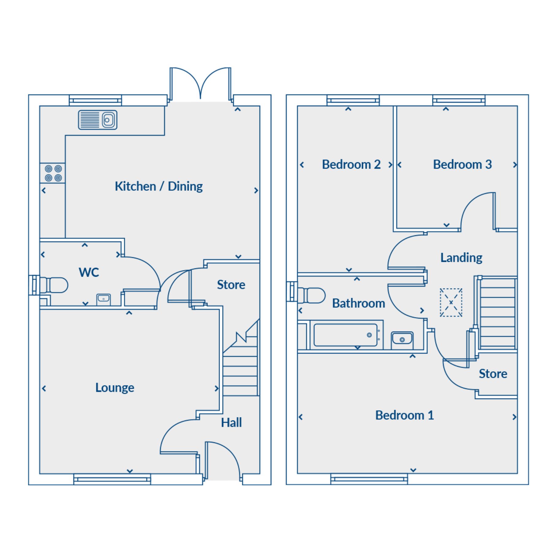 A well‑designed three‑bedroom semi‑detached home featuring a bright open‑plan kitchen/diner with French doors to the garden, a spacious living room, WC and built‑in storage. Upstairs offers three bedrooms, a contemporary bathroom and additional storage, creating a practical and comfortable space.