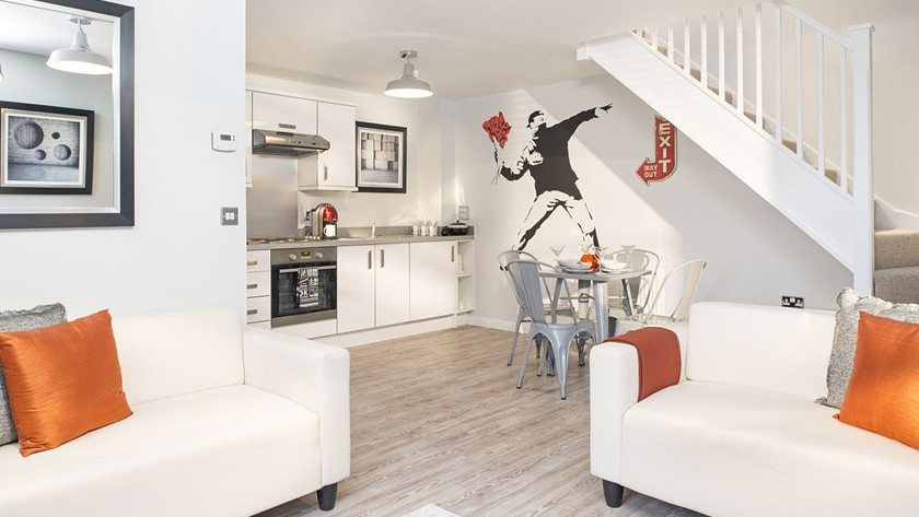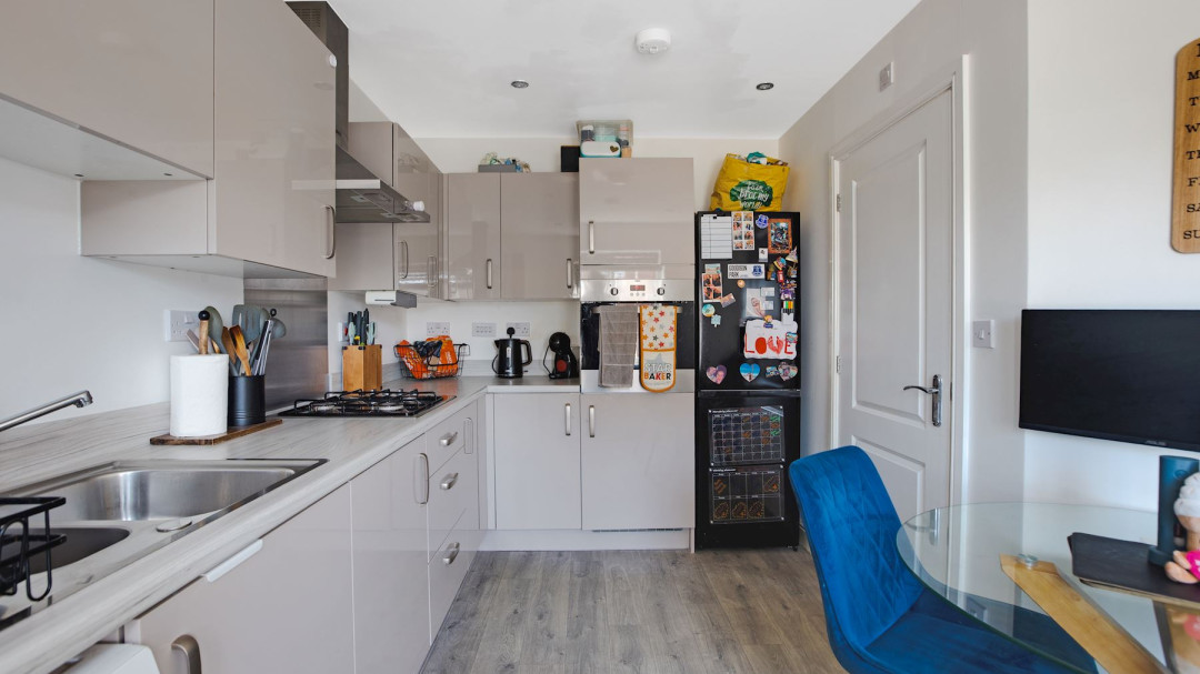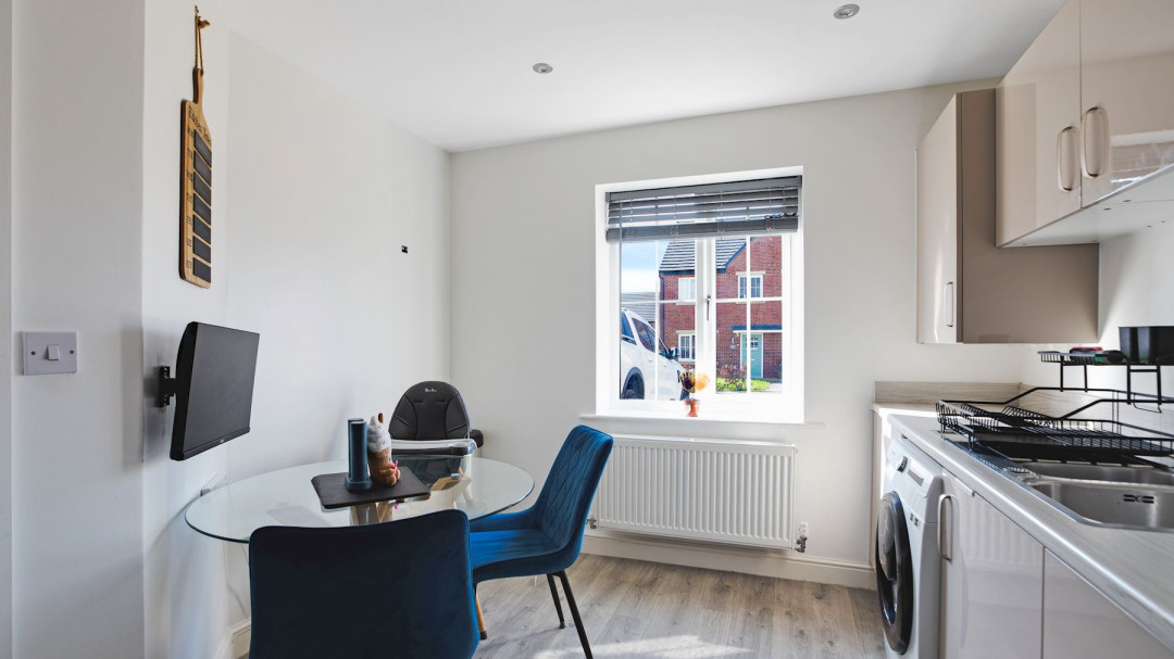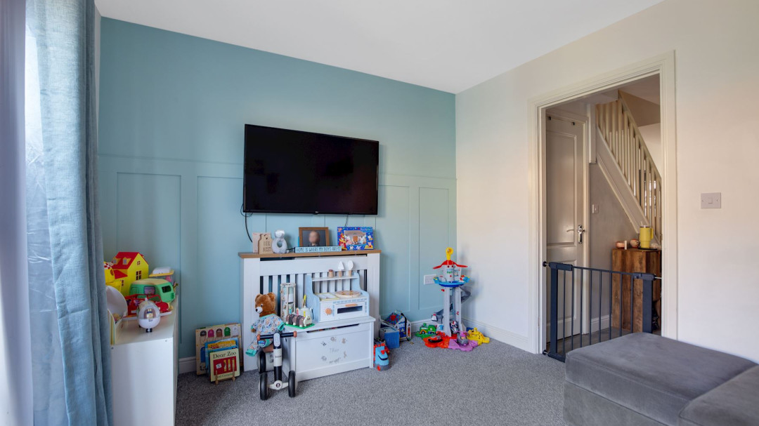 The ground floor features a convenient downstairs WC, adding practicality to the property. A cosy, yet bright Living-Room. A modern fitted kitchen, providing a versatile space for cooking.