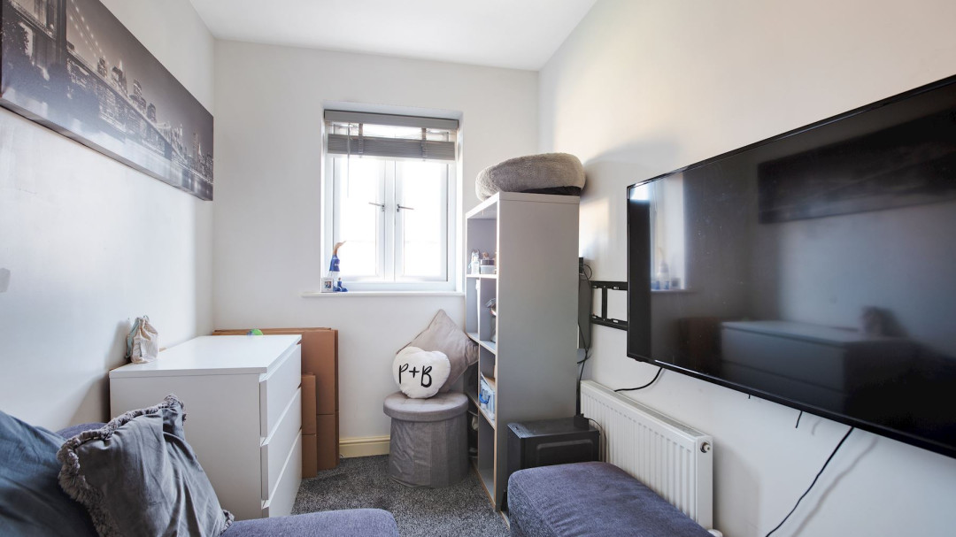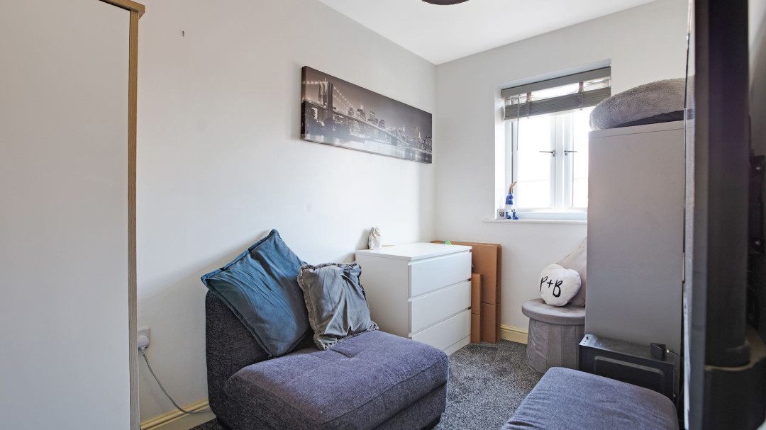 Upstairs, two well-proportioned bedrooms offer comfortable living spaces for individuals and families. These rooms can be adapted to suit your specific needs, whether you require a home office or a dedicated play area.