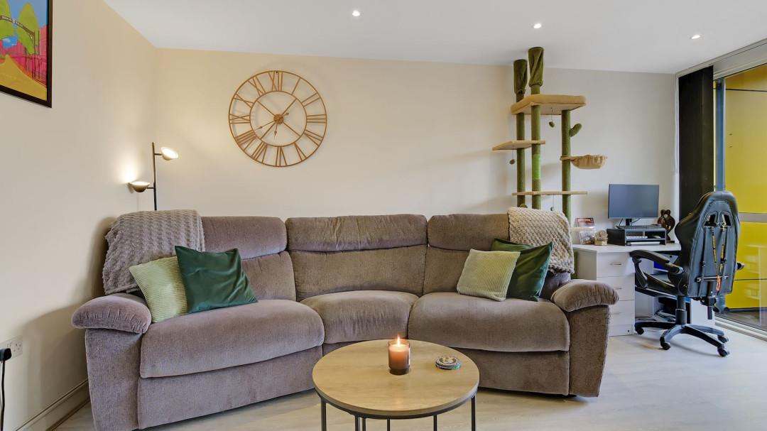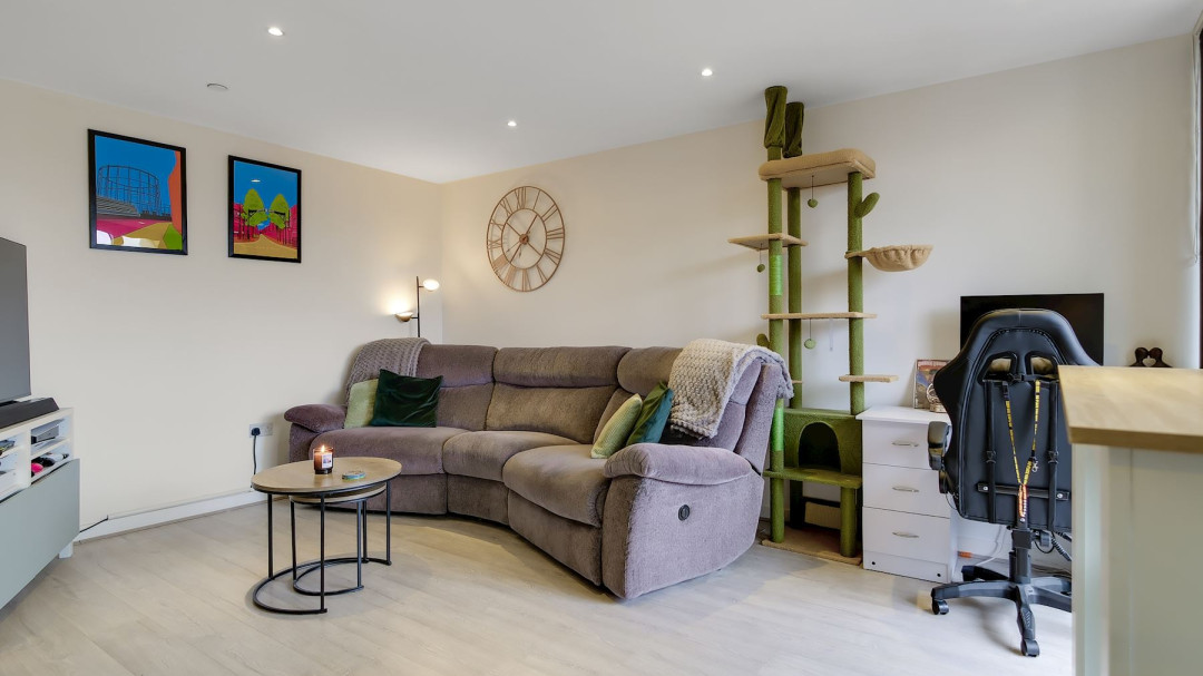 This inviting one-bedroom apartment offers a bright and homely environment, perfect for comfortable modern living. Situated on the 1st floor, the property comprises one generous bedroom and one contemporary bathroom.The generously sized kitchen is cleverly tucked away in the corner, creating the pleasant illusion of a separate room while remaining seamlessly integrated into the overall layout. It provides ample space for cooking and storage in a practical, well-designed area. The spacious living room is flooded with tons of natural light, creating an airy and welcoming atmosphere. It enjoys easy access to a generous balcony, ideal for relaxing and taking in the surroundings. The modern, bright bathroom features crisp white tiling that delivers a fresh, clean, and spa-like feel, complete with contemporary fittings.Step outside onto the impressive balcony, offering plenty of outdoor space to enjoy fresh air and views.Residents benefit from exceptional transport links, with All Saints and Langdon Park DLR stations just moments away for swift connections to Canary Wharf, Stratford, and beyond, complemented by an array of convenient bus routes.The development itself provides fantastic on-site amenities, including a roof terrace, residents' lounge, concierge service, and gym, adding an extra layer of luxury and convenience to everyday life.