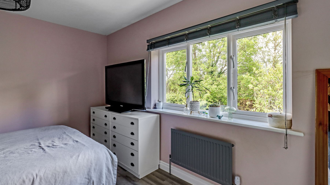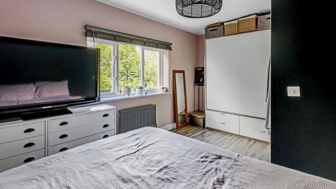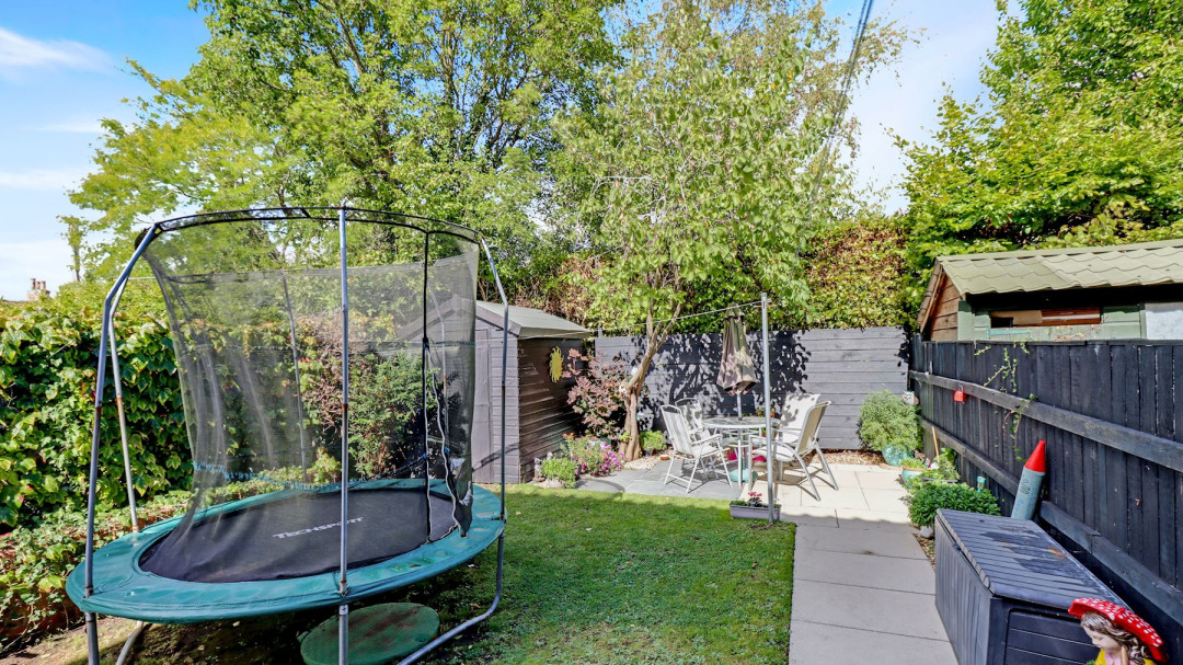 Externally, the rear garden enjoys a south-westerly aspect and includes a patio, lawn, timber shed and mature borders. To the front, there's a neatly maintained garden and off-street driveway parking to the side.