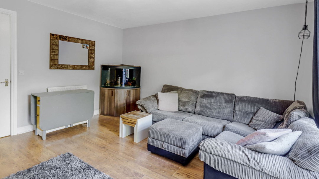 The ground floor features a welcoming entrance hall leading into a spacious lounge with dual-aspect windows, creating a light and airy living space. At the rear, the modern kitchen/diner is fitted with integrated appliances and ample storage, with French doors opening onto a generous, enclosed garden - perfect for summer entertaining. A convenient WC completes the downstairs layout.