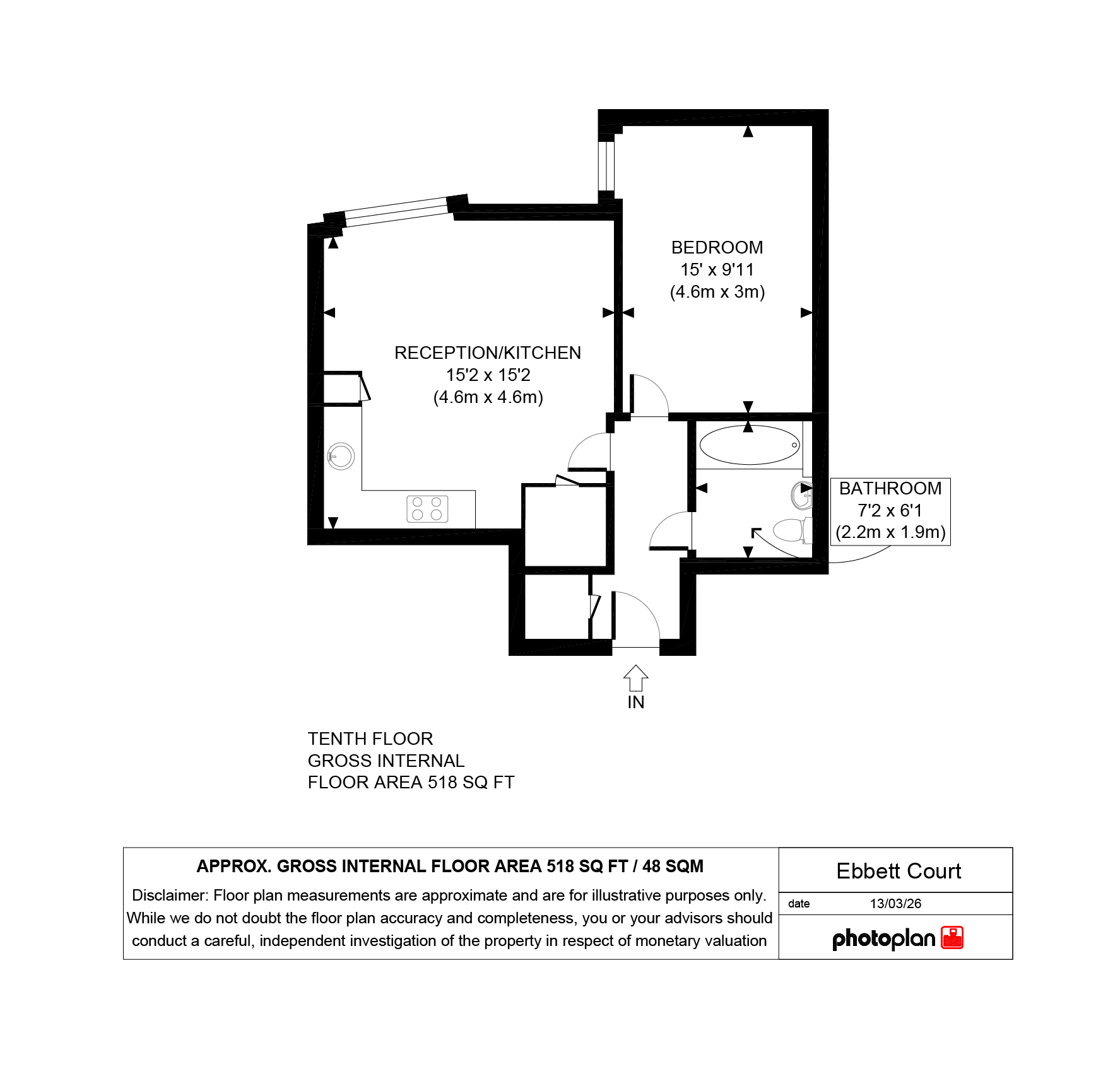 The bedroom is generously proportioned, allowing space for a comfortable home office.
