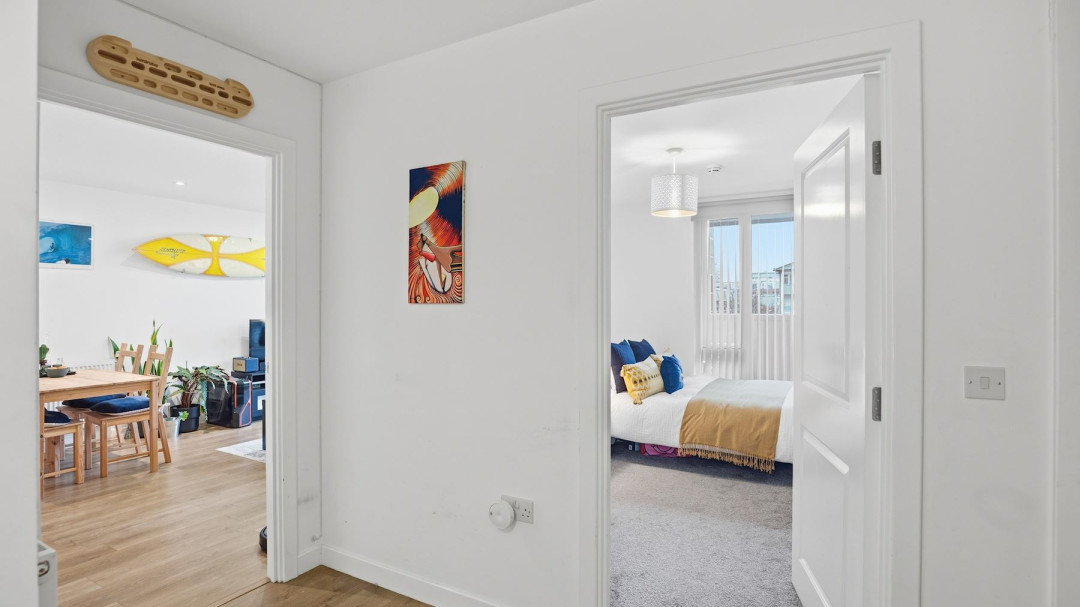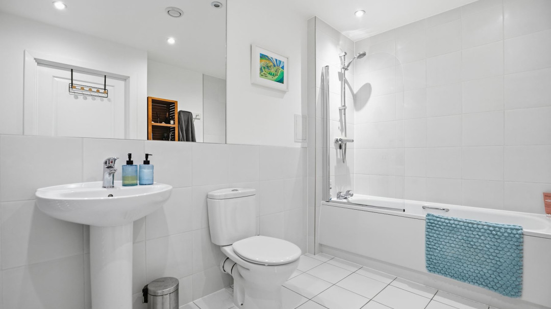 Both bedrooms are well-proportioned, providing ample space and comfort with good light and fitted storage options.The homely, bright bathroom is finished to a high standard with crisp white tiling, a shower over bath, modern fixtures, and a fresh, inviting feel.