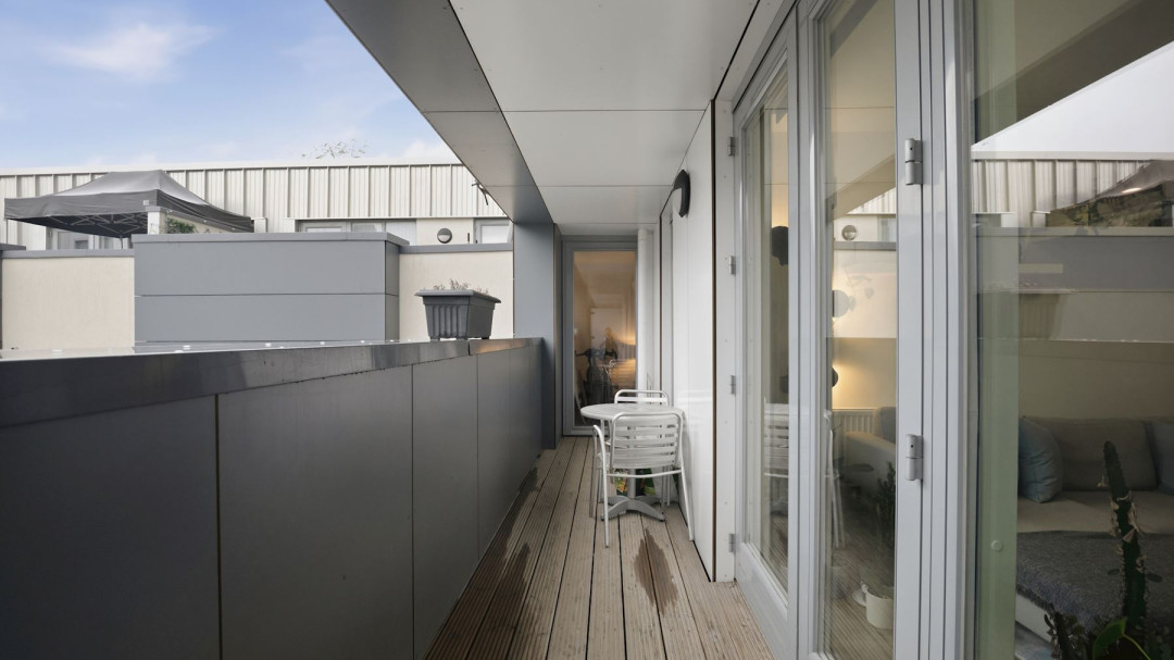 This bright, modern two-bedroom, one-bathroom apartment offers contemporary living in a well-maintained development, combining generous proportions, abundant natural light, and superb outdoor space.