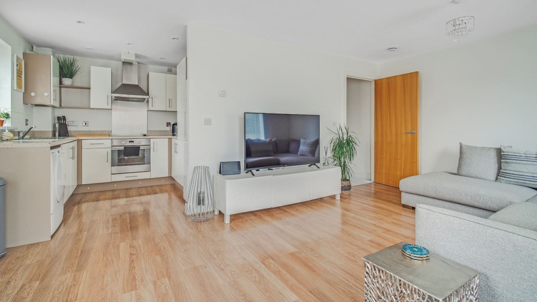 The property comprises a bright and spacious living area, a modern fitted kitchen, two well-proportioned bedrooms, and a contemporary family bathroom. The layout is both practical and comfortable, ideal for first-time buyers, couples, or small families.