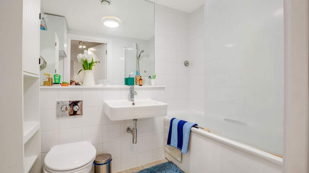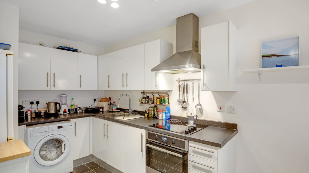 The accommodation comprises a bright and well-proportioned reception room, a separate fitted kitchen, a generous double bedroom with built-in storage, and a modern bathroom. The flat is well laid out, making good use of space and finished in a neutral style throughout.