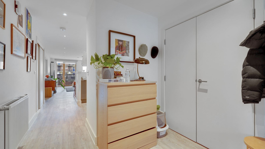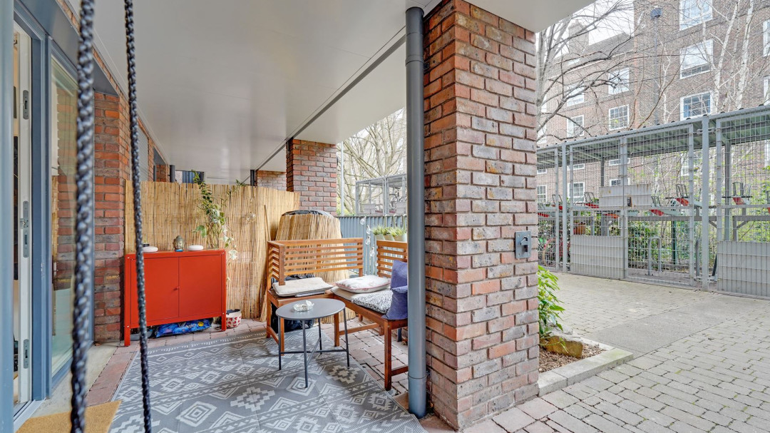 Set within the sought-after Jolles House development in Bow, this well-appointed two-bedroom ground floor apartment offers a rare opportunity to enjoy modern living with private outdoor space at both the front and rear.